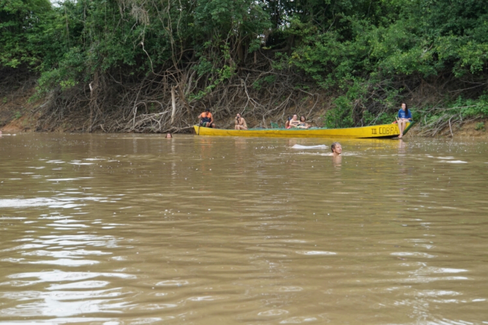 The last day we were riding on the river again to find a spot where we could swim with the river dolphins and after a few minutes of searching we really found them. They were not that trusting as I thought they would be, but here and there they showed themselves, emerged, dived into the water again and passed us without us noticing it. We were told that they would also protect us from all the alligators and caymans which were also hanging out around us. And also the Piranhas kept away from us.