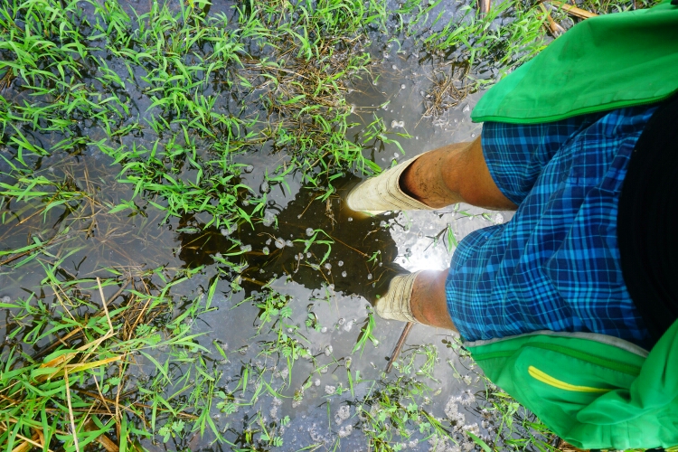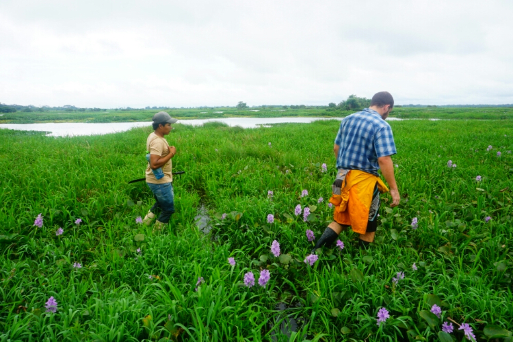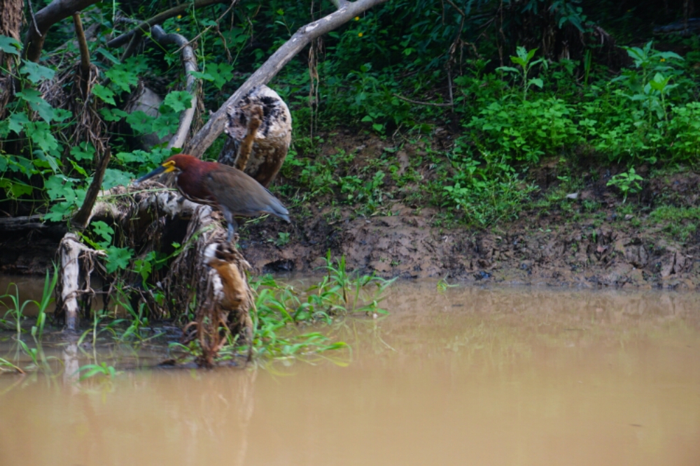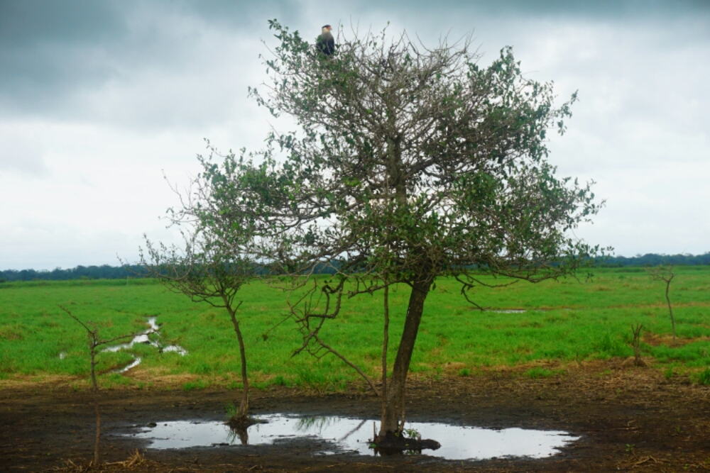 The next morning we discovered the area next to the river, traversed head-high reed, small rivers with the water up to our knees or swampy pont-water. The idea was to find an anaconda, but although we were trying hard with the help of our experienced guide we couldn’t find one. But still it was an adventure and we saw an eagle and further animals.