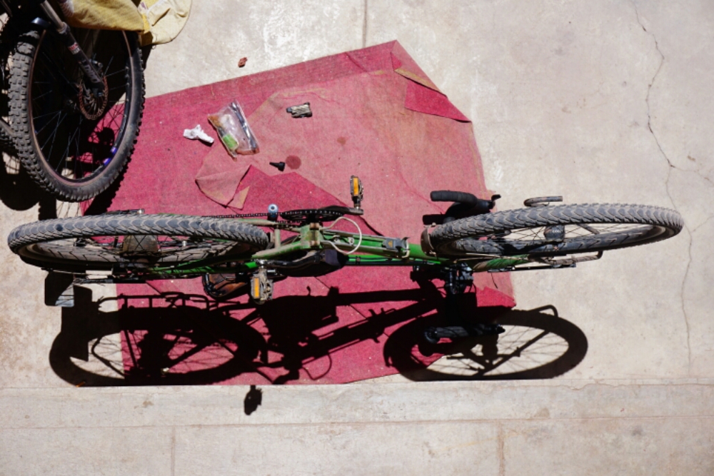 Well, yes, but no damages, which could be solved. Flat tyres and worn brakes belong to a long journey. While I had a lot of flat tyres in the beginning, it now became very rare. From the first day in Peru until today I just had one flat tyre.
