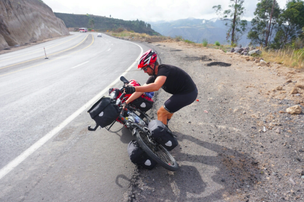 The pedal was fixed, welded by a mechanic and this in the middle of nowhere. After a night in the Refugio we started together, but after 10 kilometers the pedal brake again. So we had a last lunch together, before I went on climbing up the highest section of the Lagune route, while Camille went back to his mechanic.