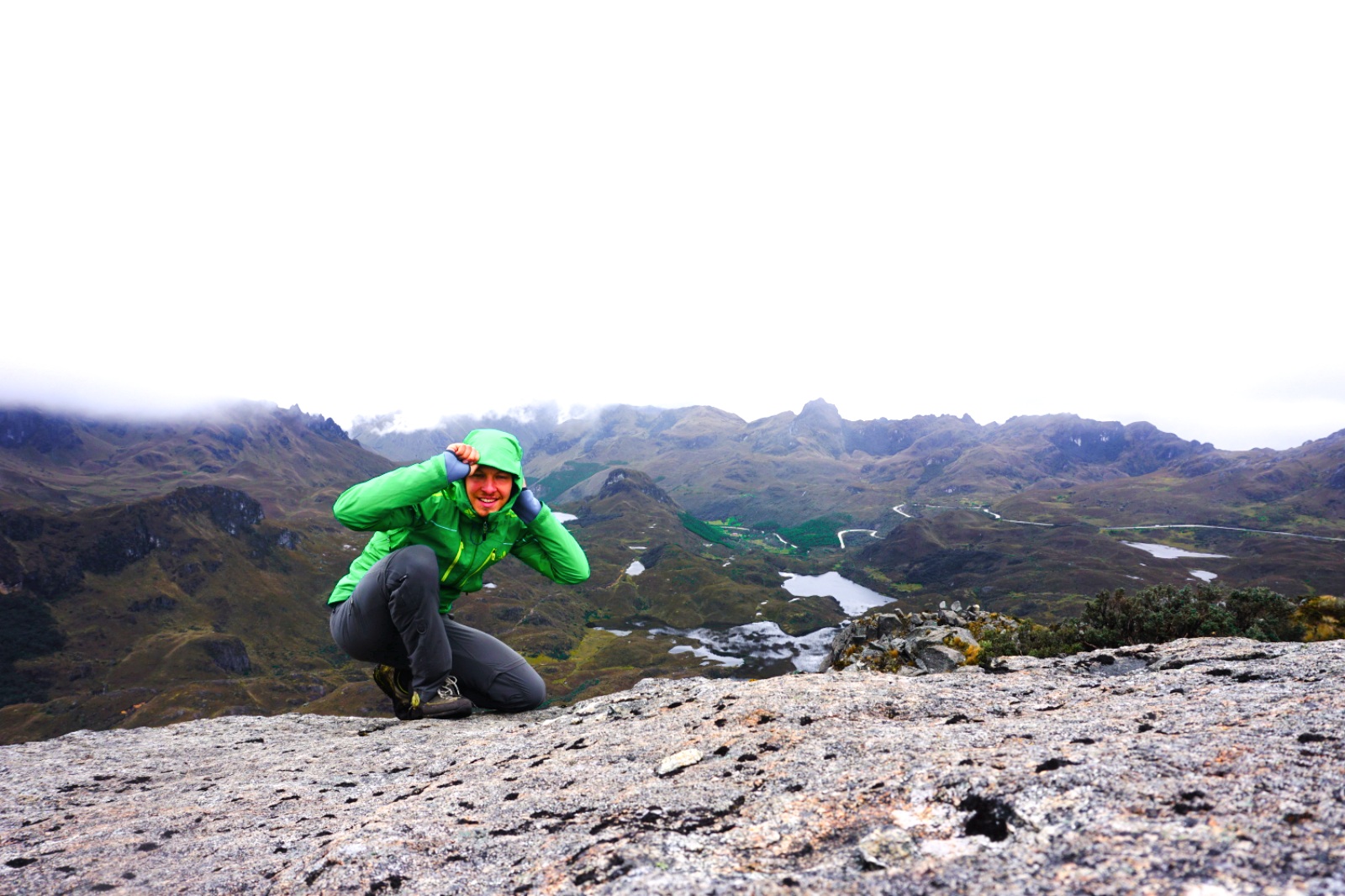 In the next morning the weather conditions were still the same and my shoes as wet as the day before. No other suitable shoes for replacement I had to slip again into the lumps of wet mud. After a few kilometers the top was finally reached, but during the descent to Cuenca the airflow let my feet transform into ice cubes.